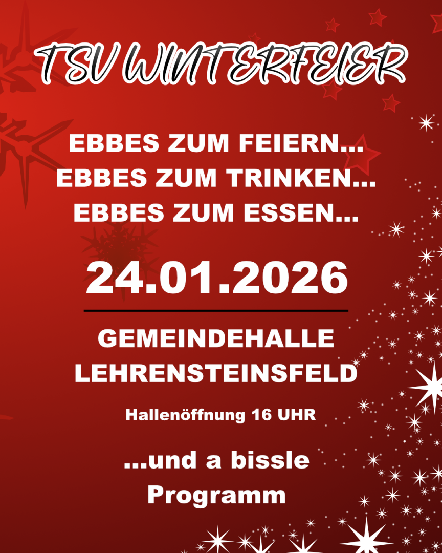 Es wird wieder eine Winterfeier geben! Dieses mal ist die Feier aus einem Guss. Wir starten Nachmittags um 16:30 zunächste mit den Kinder- und Jugendgruppen und steigern uns – bezüglich des Alters – bis zum Abend, an dem u.a. Ehrungen stattfinden werden und der Abend gemütlich an der Bar ausklingen kann. Dieses mal gibt es über die gesamte Zeit Essen und Getränke käuflich zu erwerben, die bar öffnet allerdings erst nach Ende des offiziellen Programms.